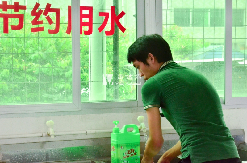 ▲飯后員工自覺主動清洗碗筷